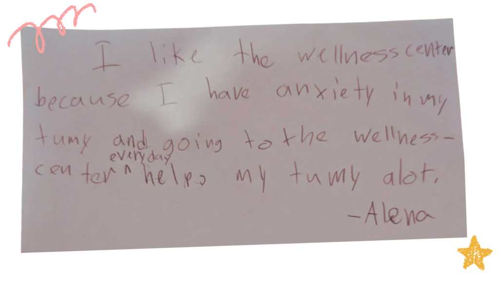 The centers are staffed by dedicated professionals who meet students where they are, helping them navigate stress, anxiety, and challenges. For some, it’s as simple as a quiet place to breathe during a difficult day. For others, it’s a trusted adult who listens and helps lighten the weight of perfectionism, family pressures, or the fear of falling short.